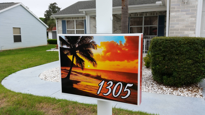 Our custom Lighted Lamp Post Signs feature photo-enhanced, high-resolution images printed on premium vinyl and laminated for superior UV protection and long-lasting color. Designed specifically for retirement communities, these illuminated signs add warmth, visibility, and charm to each home while maintaining a refined, upscale look. Powered by low-voltage LED lighting that automatically turns on at night, each sign creates a welcoming glow that enhances both curb appeal and nighttime safety.