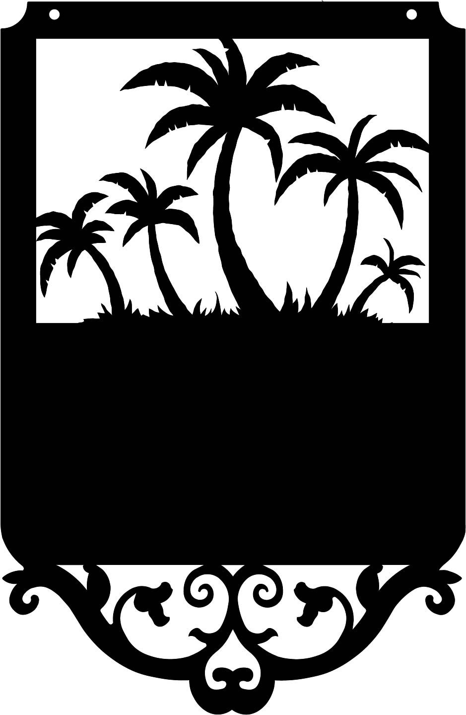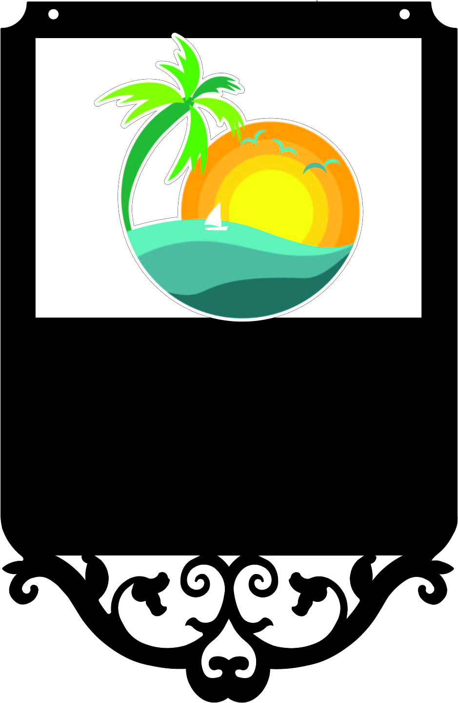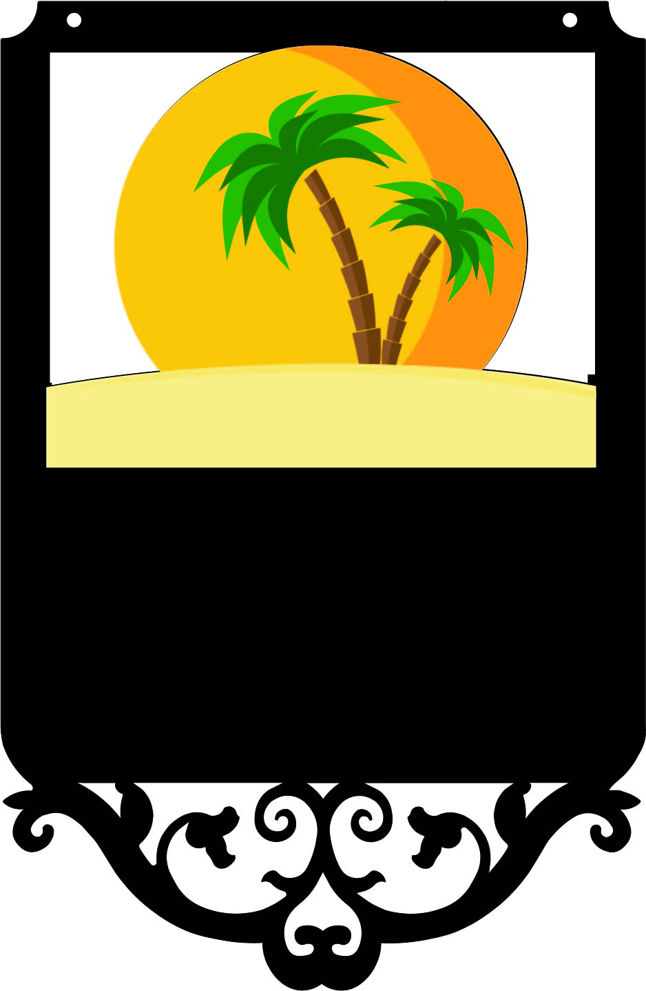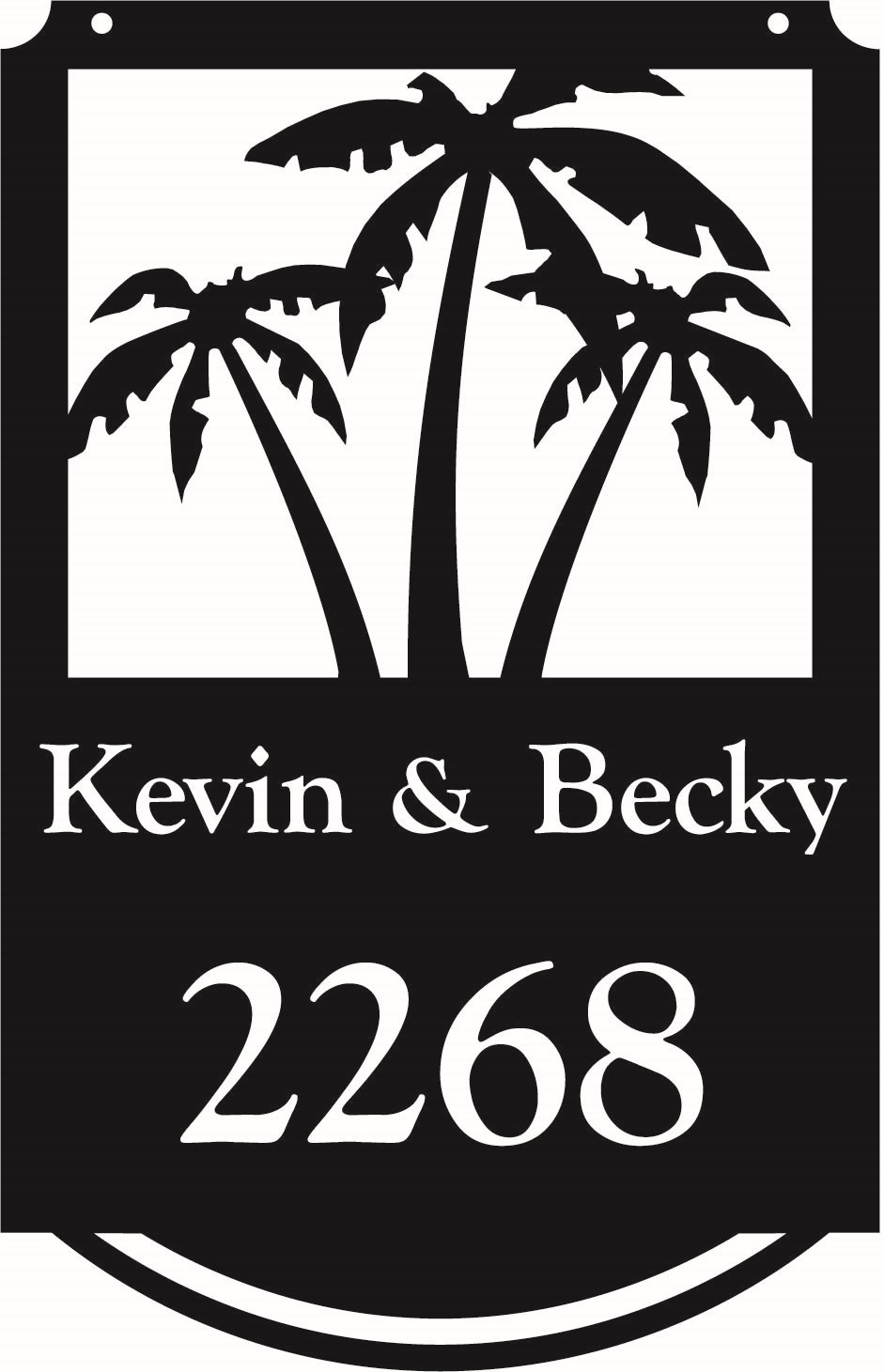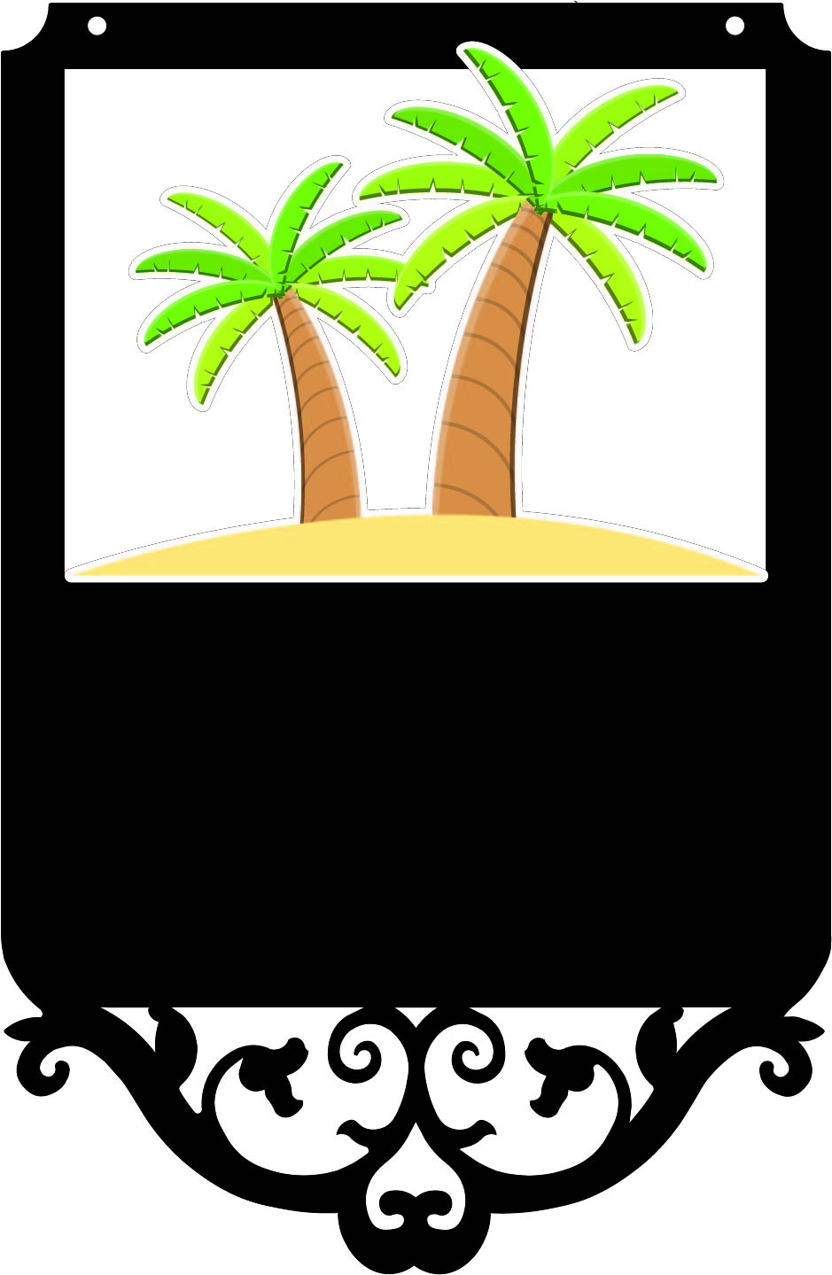 Metal sign shapes #22, #22-3 Palm & #25 offer a larger sign with a large graphic of your choice as well as up to 3 lines of text and additional graphics in the text area.